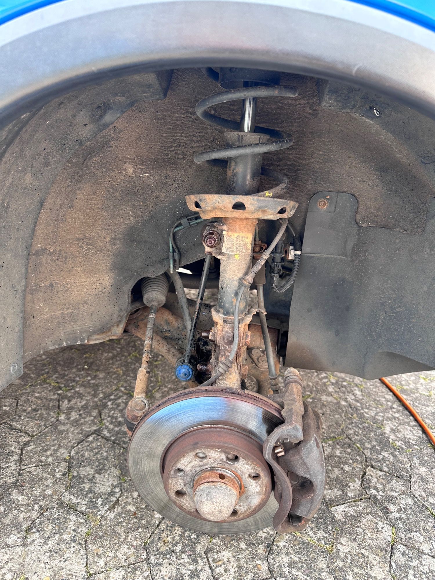 Federbruch an der Vorderachse. Sowas darf nicht passieren und ist sau gefährlich.